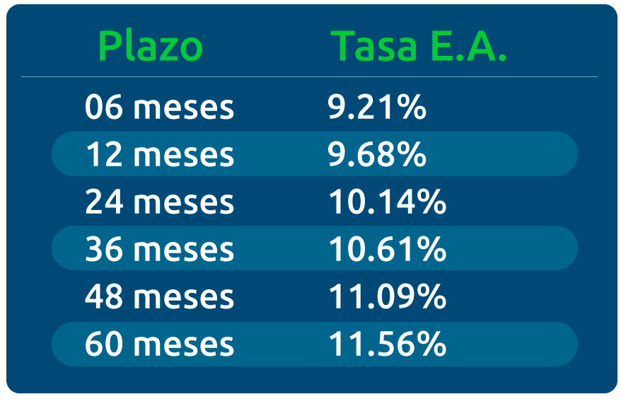 El CDAT de Mutual Tributar te permite ahorrar con rentabilidad competitivas respecto al mercado, de forma segura y flexible. Tú eliges el monto y el plazo, y al finalizar, recibes tu inversión más los intereses generados.
